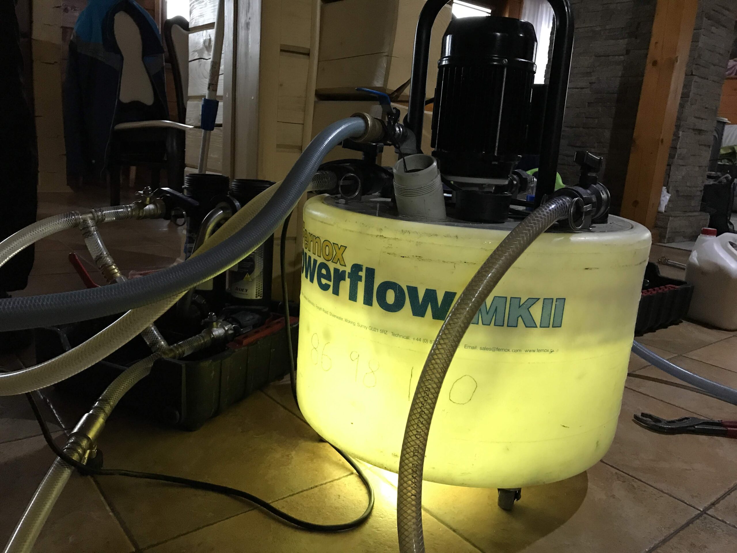 Płukanie instalacji – specjalna pompa wypłukuje osady pod ciśnieniem.